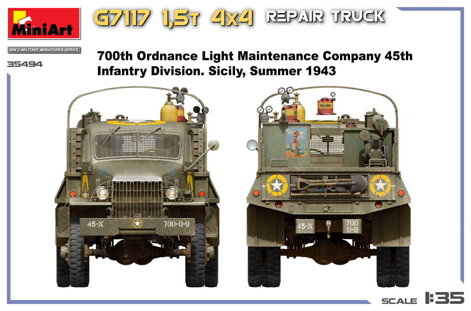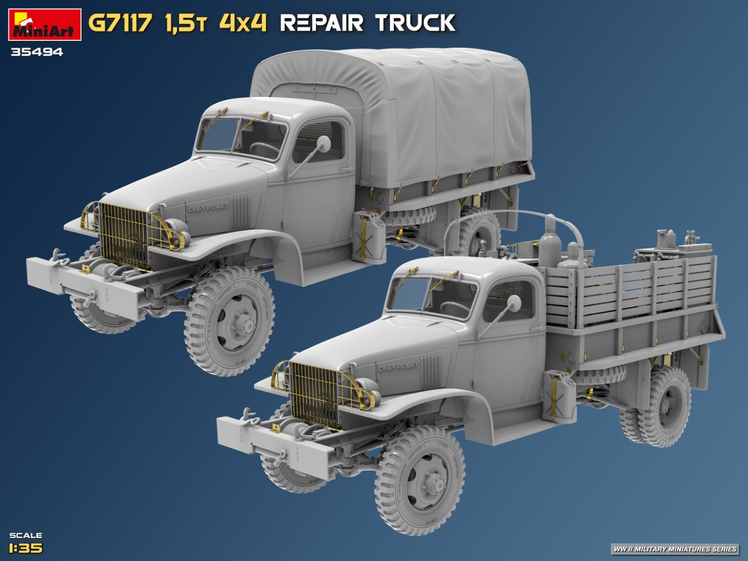 Ciężarówka naprawcza G7117 1,5t to mobilna jednostka naprawcza z charakterystyczną kabiną i skrzynią ładunkową wypełnioną warsztatem. Ważny pojazd wsparcia używany podczas II wojny światowej.