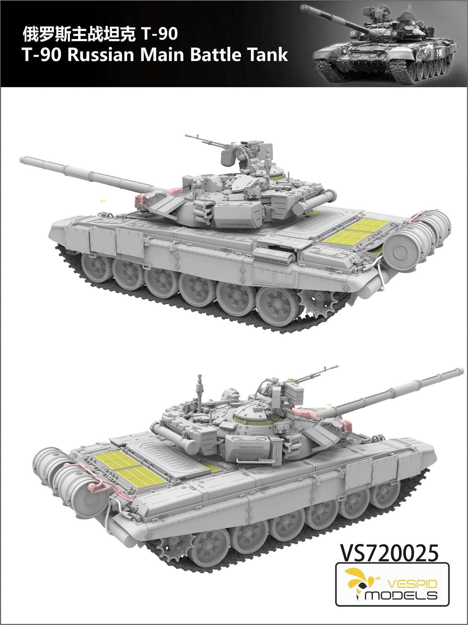 Współczesny rosyjski czołg podstawowy, produkowany od 1993 roku, konstrukcja oparta na prototypie T-88. Dziwnym faktem jest, iż Rosjanie zdecydowali się na eksport nowoczesnego czołgu, który dopiero wprowadzili do służby w swojej armii. Czołgi używane są również przez armię indyjską i algierską. Polskim odpowiednikiem T-90 jest czołg PT-91M. T-90A to seryjna wersja dla armii rosyjskiej, posiada spawaną wieżyczką, silnik V-92S2 i wizjer termiczny ESSA. Wersja znana także jako T-90 Vladimir lub T-90M.