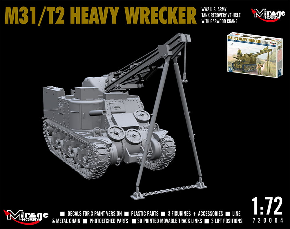 Model plastikowy do sklejania w skali 1:72, amerykańskiego ciągnika ewakuacyjnego M31/T2 z okresu II wojny światowej.
