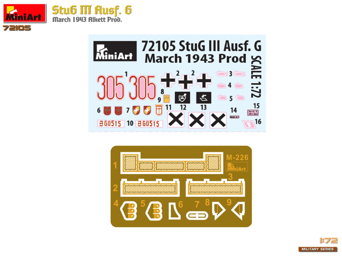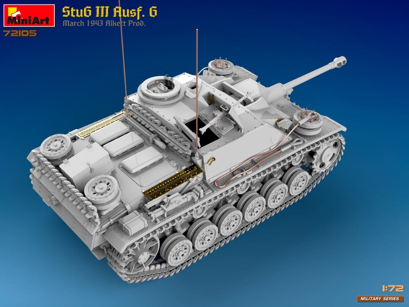 Model plastikowy do sklejania w skali 1:72, działa pancernego StuG Sturmgeschutz III Ausf.G March 1943 Alkett Production, z okresu II wojny światowej.