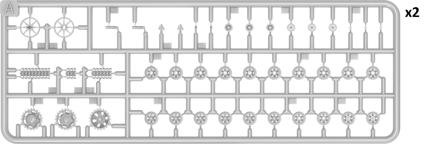 - plastikowe gąsienice podzielone na ogniwka i gotowe sekcje,