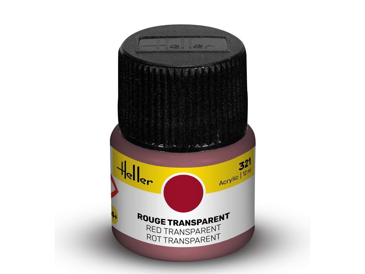 Farba modelarska akrylowa "Red transparent", przeznaczona do malowania pędzelkiem ale przy odpowiednim rozcieńczeniu i technice malowania, sprawdza się także w aerografie. Może być stosowana do prawie wszystkich powierzchni z tworzyw sztucznych, drewna i metalu. Rozpuszczalna w wodzie, bezwonna i nietoksyczna. Słoiczek zawiera 12ml farby akrylowej.