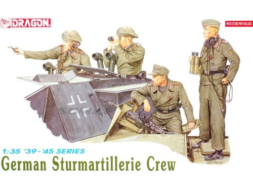 Modele plastikowych figurek do sklejania (żołnierze 4szt.) w skali 1:35 z elementami fototrawionymi, niemieckiej załogi artylerii szturmowej.