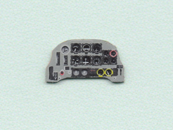 Fototrawiona, barwiona tablica przyrządów, gotowa do zamontowania w modelu (JustStick). Zestaw elementów fototrawionych do waloryzacji modeli, przeznaczony jest do stosowania w modelach samolotu Heinkel He 112B, w skali 1:72 z oferty firmy RS Models.