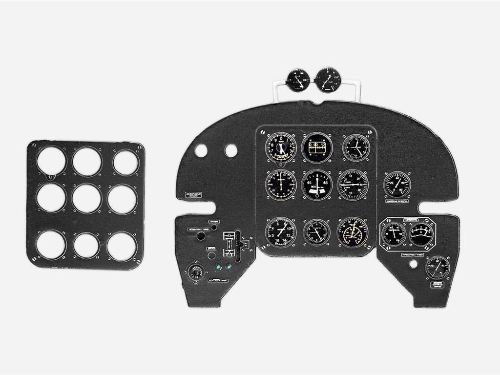 Fototrawiona, barwiona tablica przyrządów, gotowa do zamontowania w modelu (JustStick). Zestaw elementów fototrawionych do waloryzacji modeli, przeznaczony jest do stosowania w modelach samolotu Yakowlew Jak-3 Yak-3 Early, w skali 1:32 z oferty firmy Special Hobby.