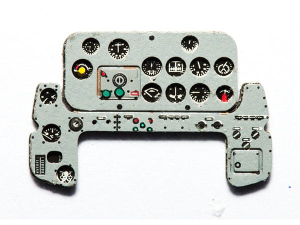 Fototrawiona, barwiona tablica przyrządów, gotowa do zamontowania w modelu (JustStick). Zestaw elementów fototrawionych do waloryzacji modeli, przeznaczony jest do stosowania w modelach samolotów LaGG-3 (ŁaGG-3) i La-5 (Ła-5) early, w skali 1:72 z oferty firm AML i Roden.