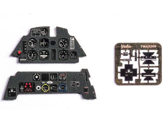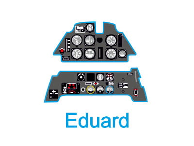 Fototrawiona, barwiona tablica przyrządów, gotowa do zamontowania w modelu (JustStick). Zestaw elementów fototrawionych do waloryzacji modeli, przeznaczony jest do stosowania w modelach samolotu Messerschmitt Bf109 E, w skali 1:32 z oferty firmy Eduard.