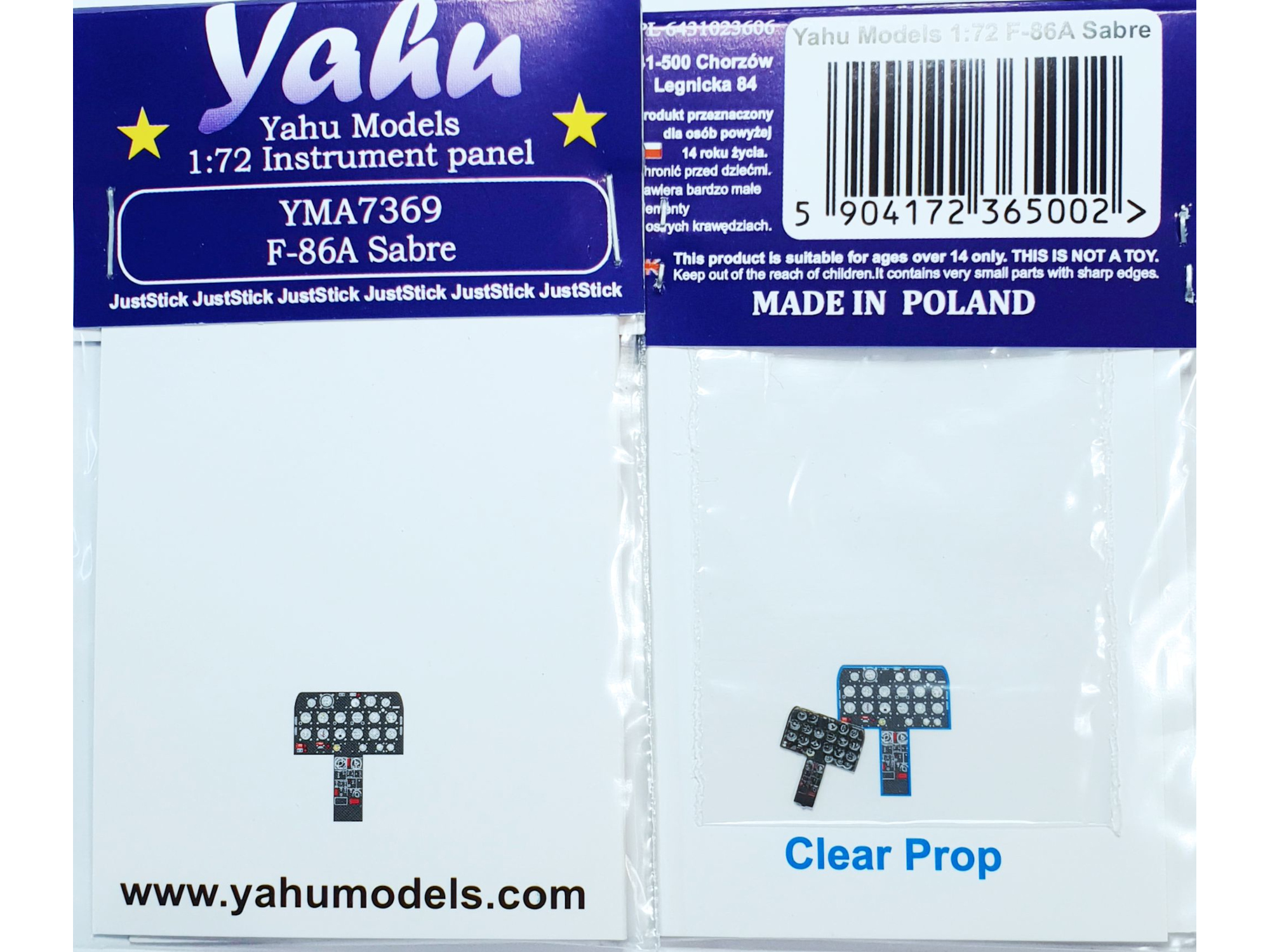 Fototrawiona, barwiona tablica przyrządów, gotowa (JustStick) do zamontowania w modelu. Zestaw elementów fototrawionych do waloryzacji modeli, przeznaczony jest do stosowania w modelach samolotu F-86A Sabre, w skali 1:72 z oferty firmy Clear Prop.