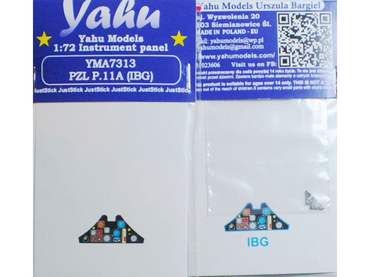 Fototrawiona, barwiona tablica przyrządów, gotowa (JustStick) do zamontowania w modelu. Zestaw elementów fototrawionych do waloryzacji modeli, przeznaczony jest do stosowania w modelach samolotu PZL P.11a, w skali 1:72 z oferty firmy IBG Models.