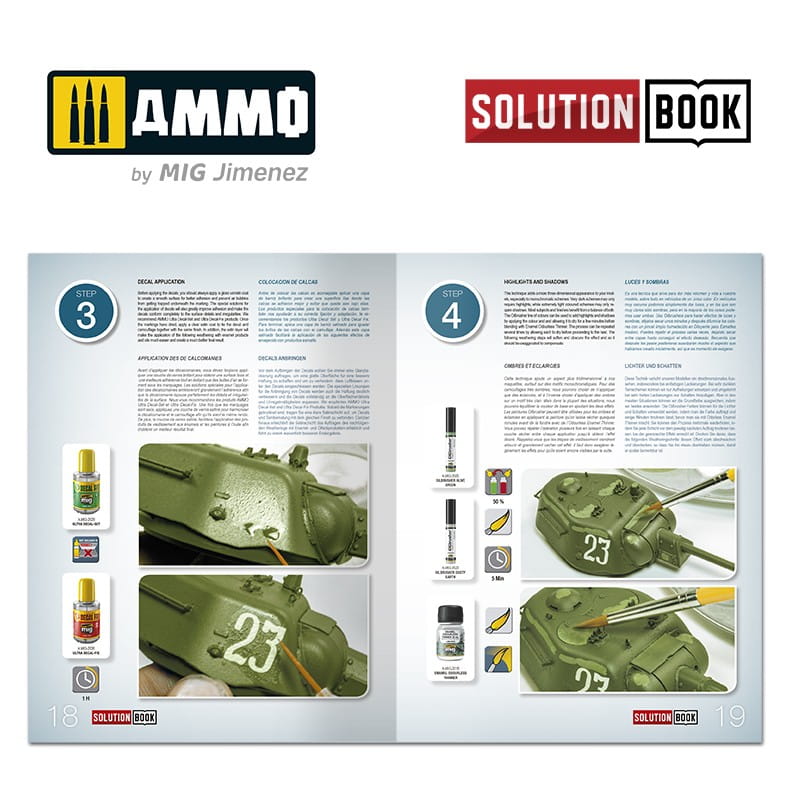 Solution book 11 - jak malować rosyjskie zielone pojazdy 4BO. Ten kompletny przewodnik z samouczkami krok po kroku, wyjaśnia jak zastosować różne kolory i efekty typowe dla pojazdów Armii Czerwonej pomalowanych w monotonnym schemacie 4BO. Solution book to prosty i podstawowy przewodnik mający na celu pomóc każdemu modelarzowi w łatwym osiągnięciu wyników podobnych do tych przedstawionych w każdym przykładzie. Nie ma znaczenia, czy czytelnik jest nowicjuszem, czy bardziej doświadczonym modelarzem. Postępując zgodnie z krokami przedstawionymi w tym przewodniku, będziesz w stanie uzyskać niesamowite rezultaty za pomocą przedstawionych wydajnych i skutecznych metod.