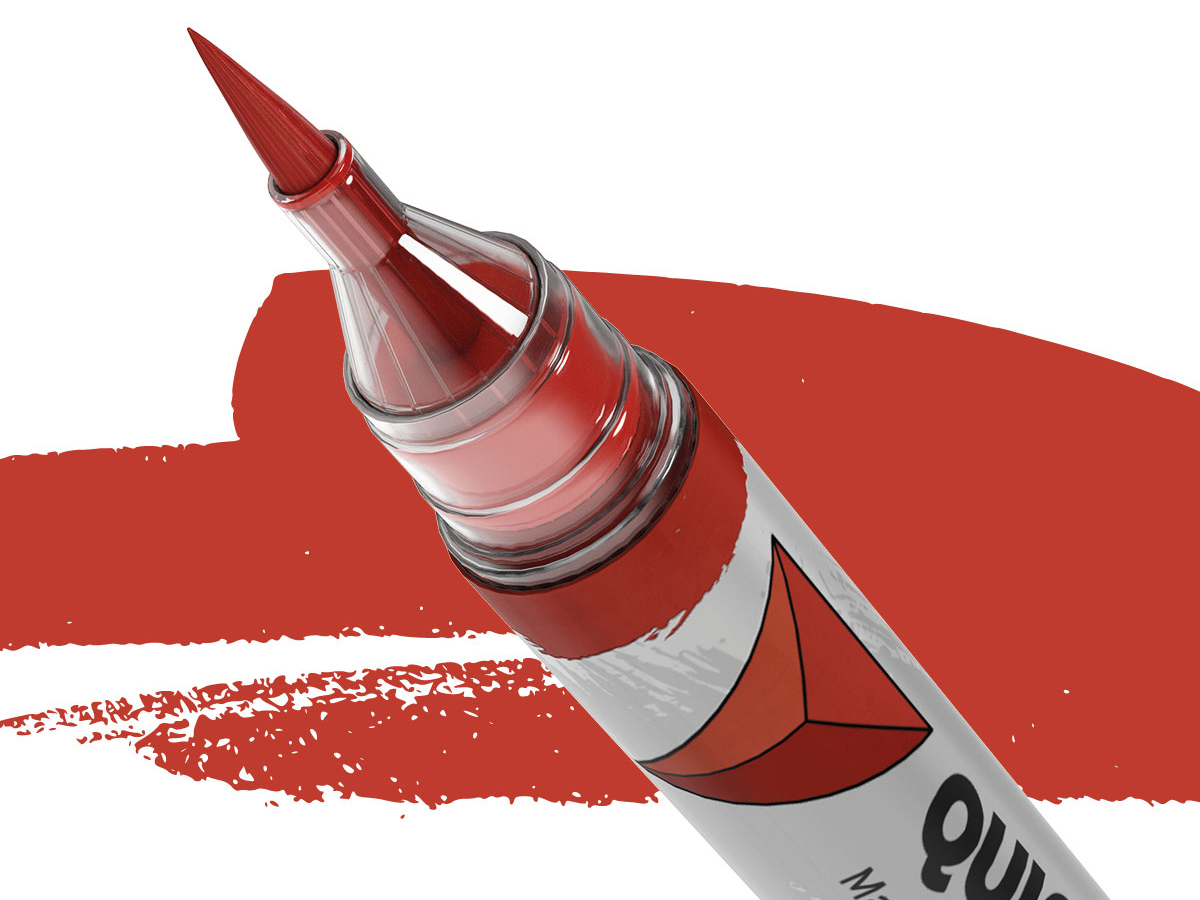 Końcówka jest bardzo ważnym elementem markerów Quick Marker i jest wykonana z miękkich włókien syntetycznych, podobnie jak tradycyjne pędzle. Jej specjalna końcówka jest bardzo ostra, co ułatwia uzyskiwanie drobnych szczegółów, a jej elastyczność pozwala na szybkie pokrycie miniatury.