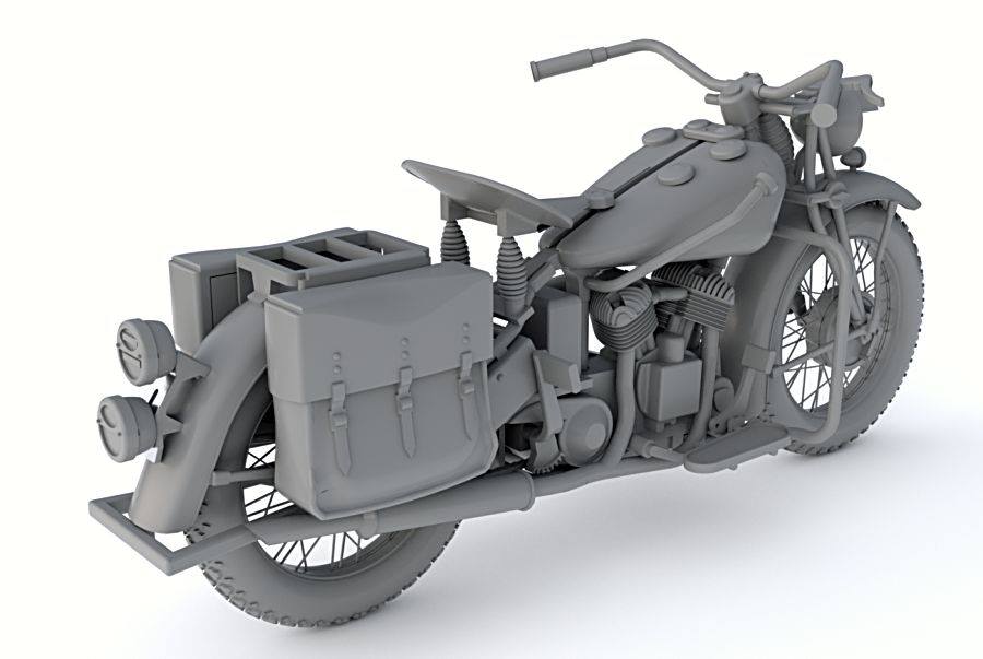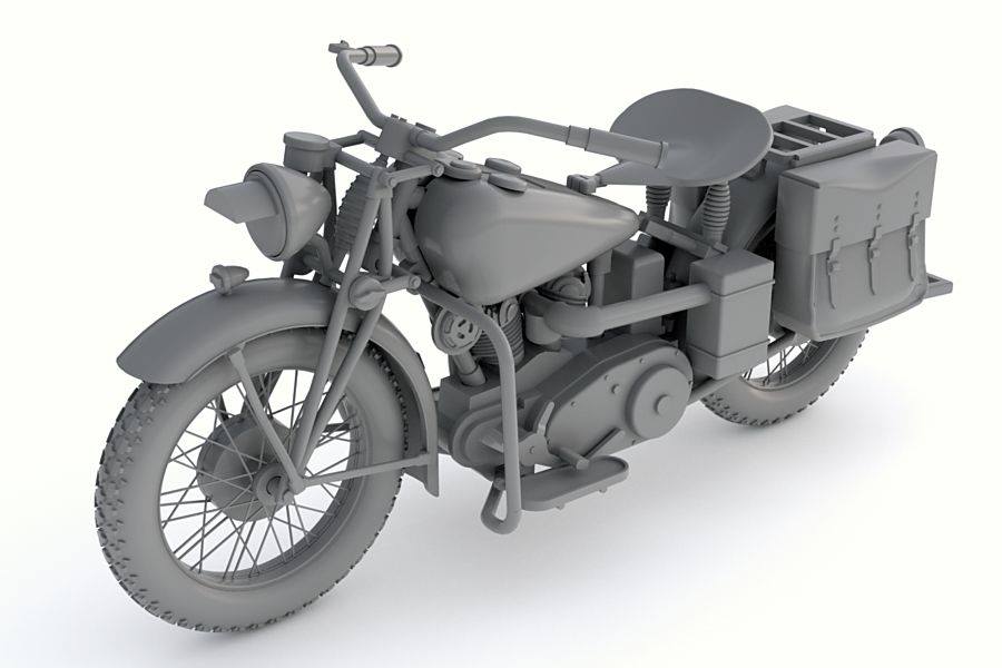 Model plastikowy do sklejania w skali 1:35, amerykańskiego motocykla wojskowego Indian 741B z okresu II wojny światowej.