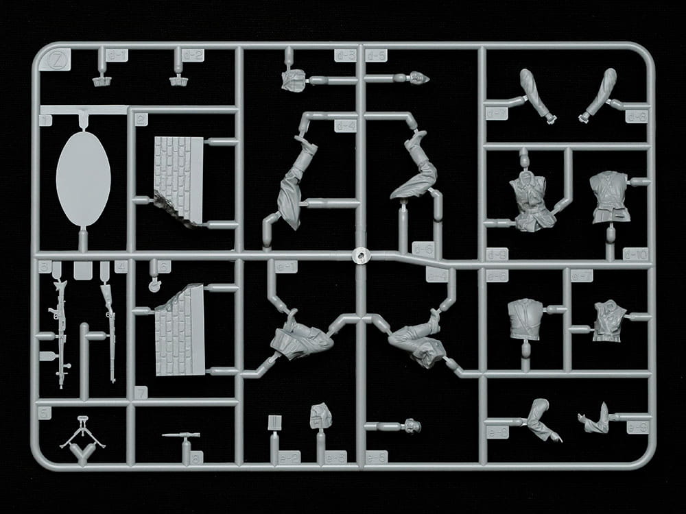 Modele plastikowych figurek do sklejania w skali 1:35, niemieckiego oddziału karabinów maszynowych (MID-WWII) z okresu II wojny światowej.