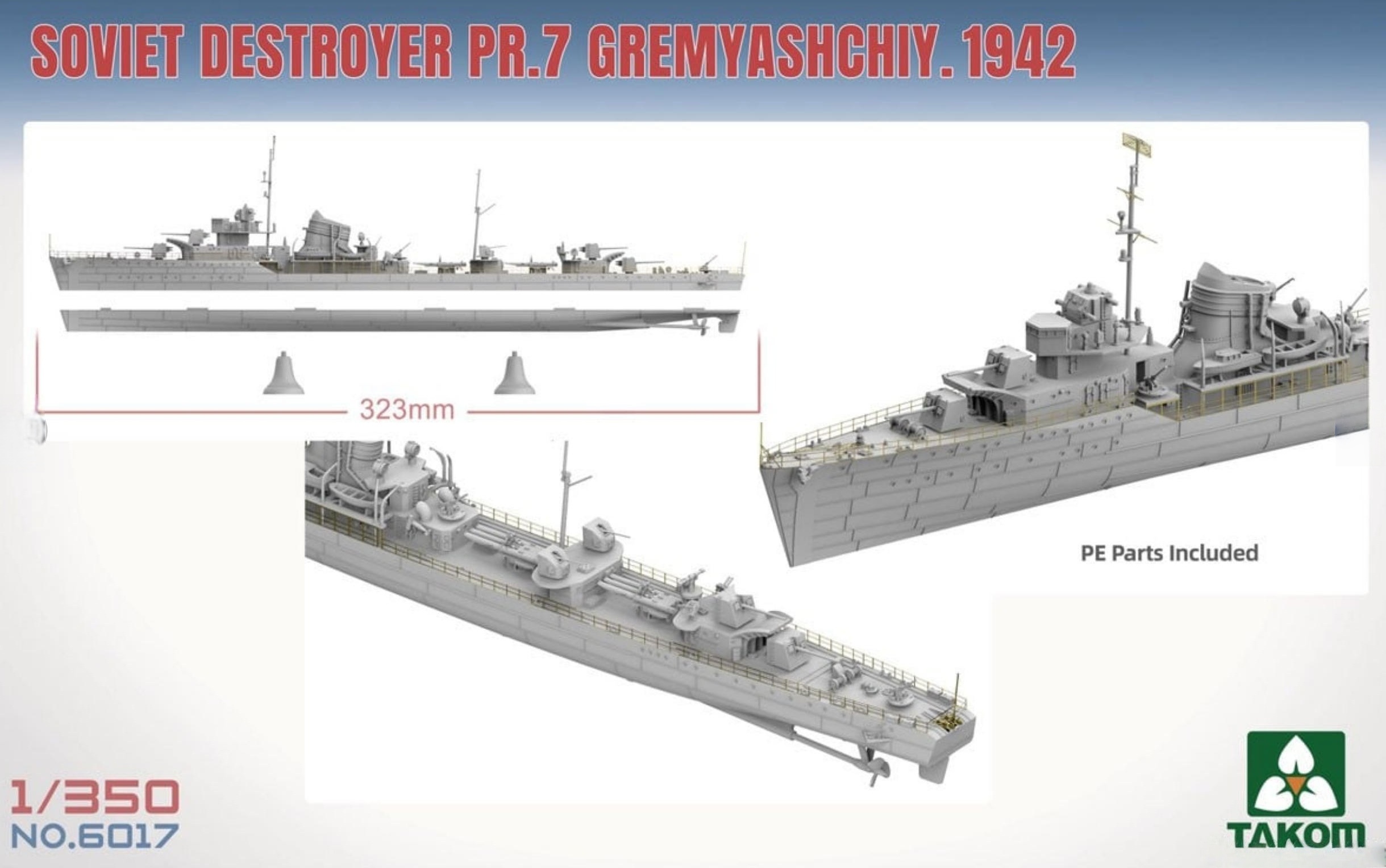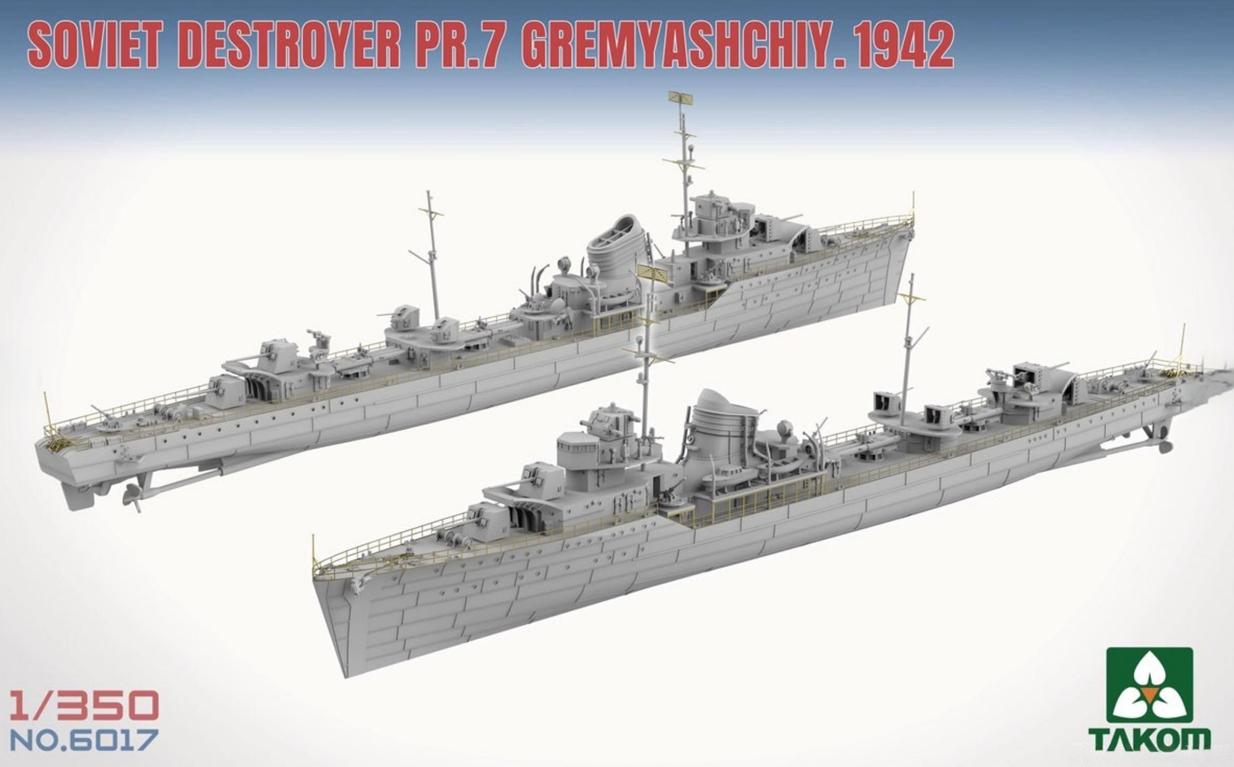 Model plastikowy do sklejania w skali 1:350, radzieckiego okrętu niszczyciela PR.7 Gremyashchiy 1942 Soviet Destroyer, z okresu II wojny światowej.