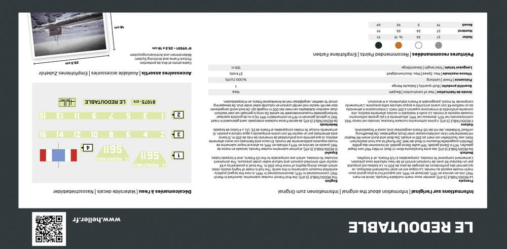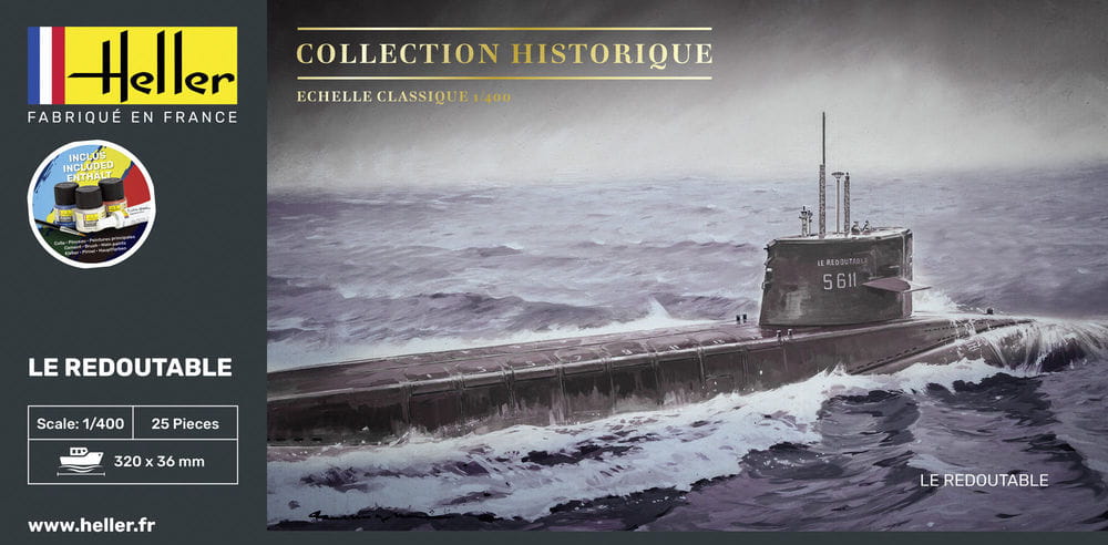 Model plastikowy do sklejania w skali 1:400, francuskiego okrętu podwodnego Redoutable S611.