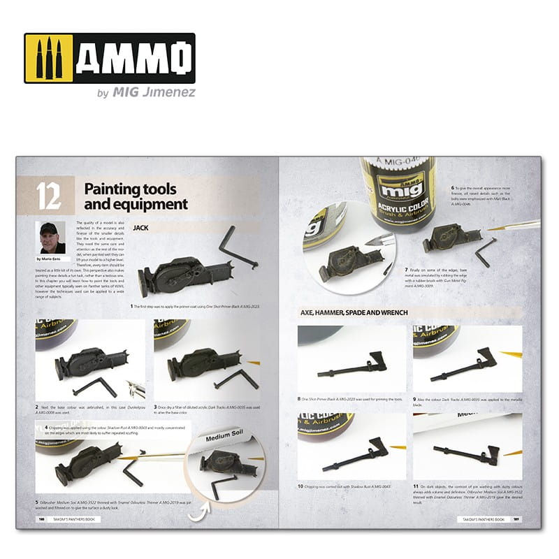 Czołg Panther to niewątpliwie jeden z najbardziej kultowych pojazdów opancerzonych II wojny światowej. W tej niezwykle obszernej książce, prowadzonej przez jednych z najlepszych modelarzy na świecie, dowiesz się, jak budować i malować najdokładniejsze i najbardziej szczegółowe modele Panther na rynku produkowane przez Takom. Od malowania wnętrz po końcowe procesy weatheringu, ta obszerna książka definiuje różne schematy kamuflażu używane w różnych okresach wojny, różne poziomy weatheringu, kamuflaż zimowy, elementy w kolorze podkładu, przewodnik po malowaniu narzędzi i wyposażenia, zastosowanie zimmeritu, produkty i kolory odpowiednie dla każdej techniki i wiele więcej.