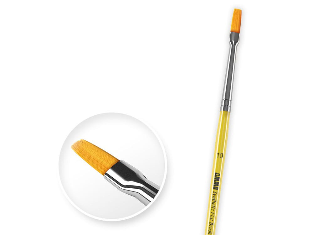 Pędzelek modelarski płaski z syntetycznym barwionym na żółto włosiem i drewnianym okrągłym trzonkiem. Idealny pędzel do pracy z pojazdami wojskowymi, samolotami i wszystkimi modelami w skali.
