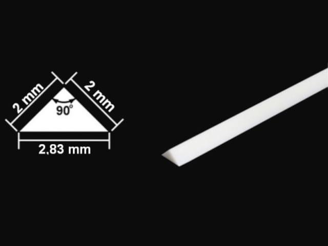 Wszechstronny materiał stanowiący biały pręt styrenowy trójkątny, doskonale nadaje się do dostosowywania plastikowych modeli, prac projektowych i tworzenia własnych oryginalnych dzieł. Mogą być spajane z tworzywami sztucznymi klejem modelarskim i malowane farbami modelarskimi.