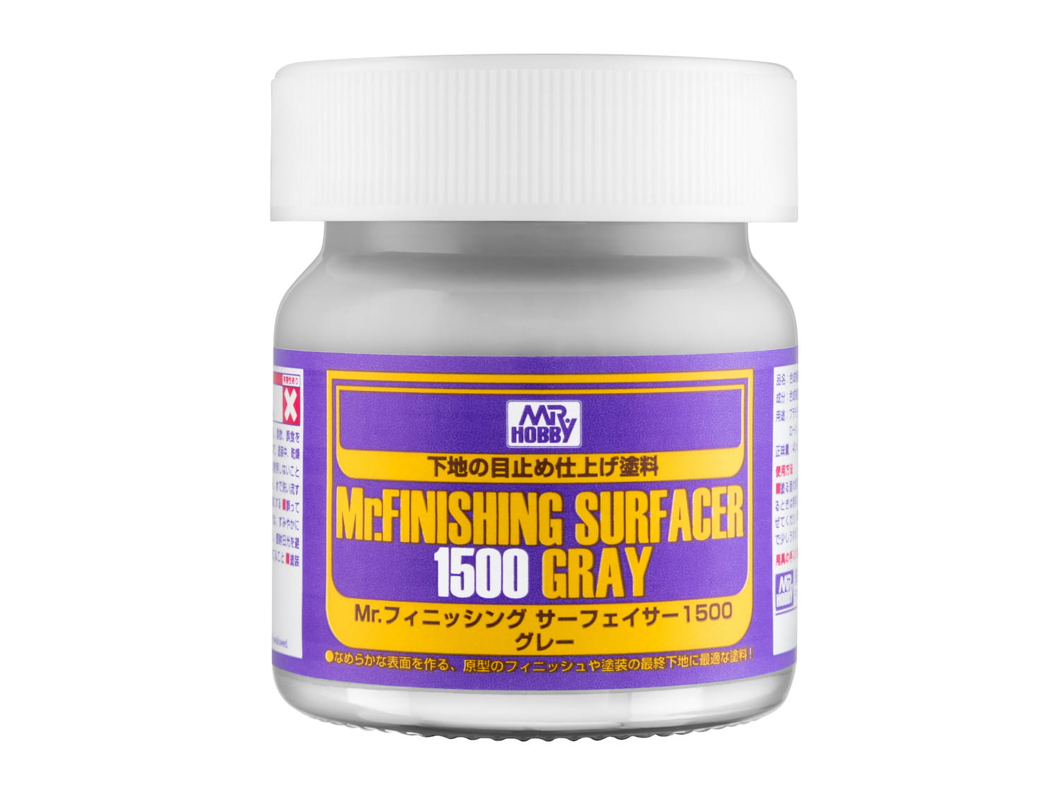 Mr.Surfacer to seria najwyższej jakości podkładów / płynnych szpachlówek do modeli polistyrenowych. Dzięki zastosowaniu wysokiej klasy komponentów uzyskiwana powłoka jest jednocześnie niezwykle cienka, trwała i odporna mechanicznie.