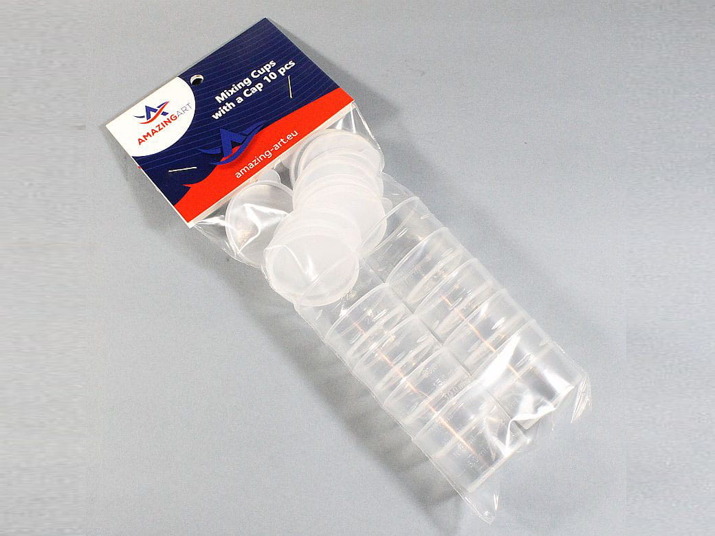 Plastikowe pojemniczki z pokrywką (10szt.) o pojemności 25ml do mieszania farb, idealne do przygotowania mieszanki mniejszej ilości farby do pokrycia mniejszych powierzchni.