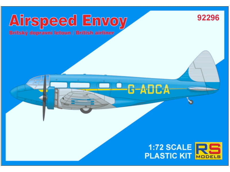 Model plastikowy do sklejania w skali 1:72, brytyjskiego lekkiego samolotu pasażerskiego Airspeed AS.6 Envoy.