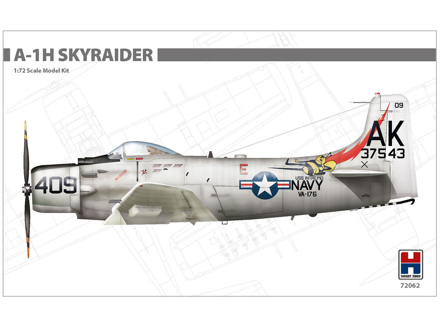 Model plastikowy do sklejania w skali 1:72, amerykańskiego pokładowego samolotu szturmowego Douglas A-1H Skyraider.
