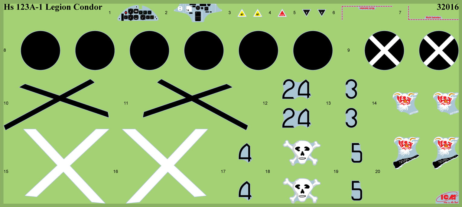 Model plastikowy do sklejania w skali 1:32, niemieckiego samolotu Henschel Hs 123A Legion Condor z okresu II wojny światowej.