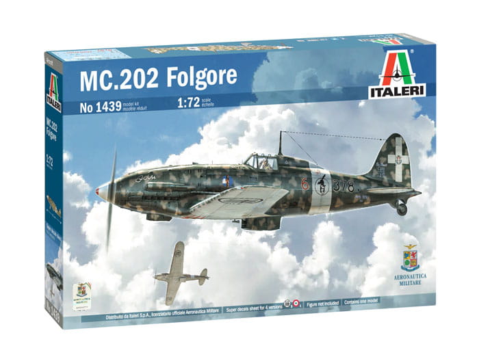 Model plastikowy do sklejania w skali 1:72, włoskiego samolotu myśliwskiego Macchi MC.202 Folgore (Błyskawica) z okresu II wojny światowej.