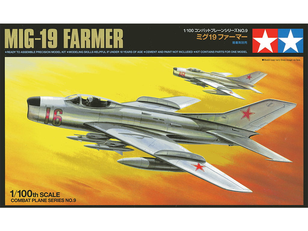 Model plastikowy do sklejania w skali 1:100, radzieckiego samolotu myśliwskiego Mikoyan MiG-19 Farmer.