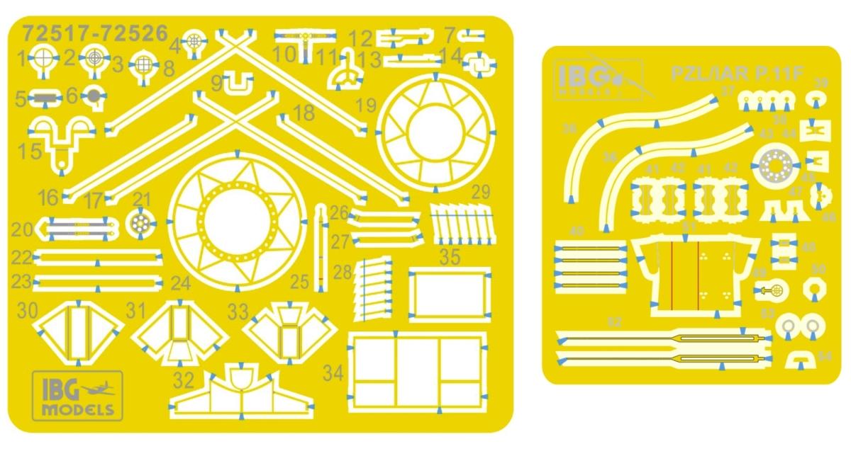 Model plastikowy do sklejania w skali 1:72, polskiego samolotu myśliwskiego PZL/IAR P.11F w wersji z nartami produkcji Szomańskiego, z okresu II wojny światowej.