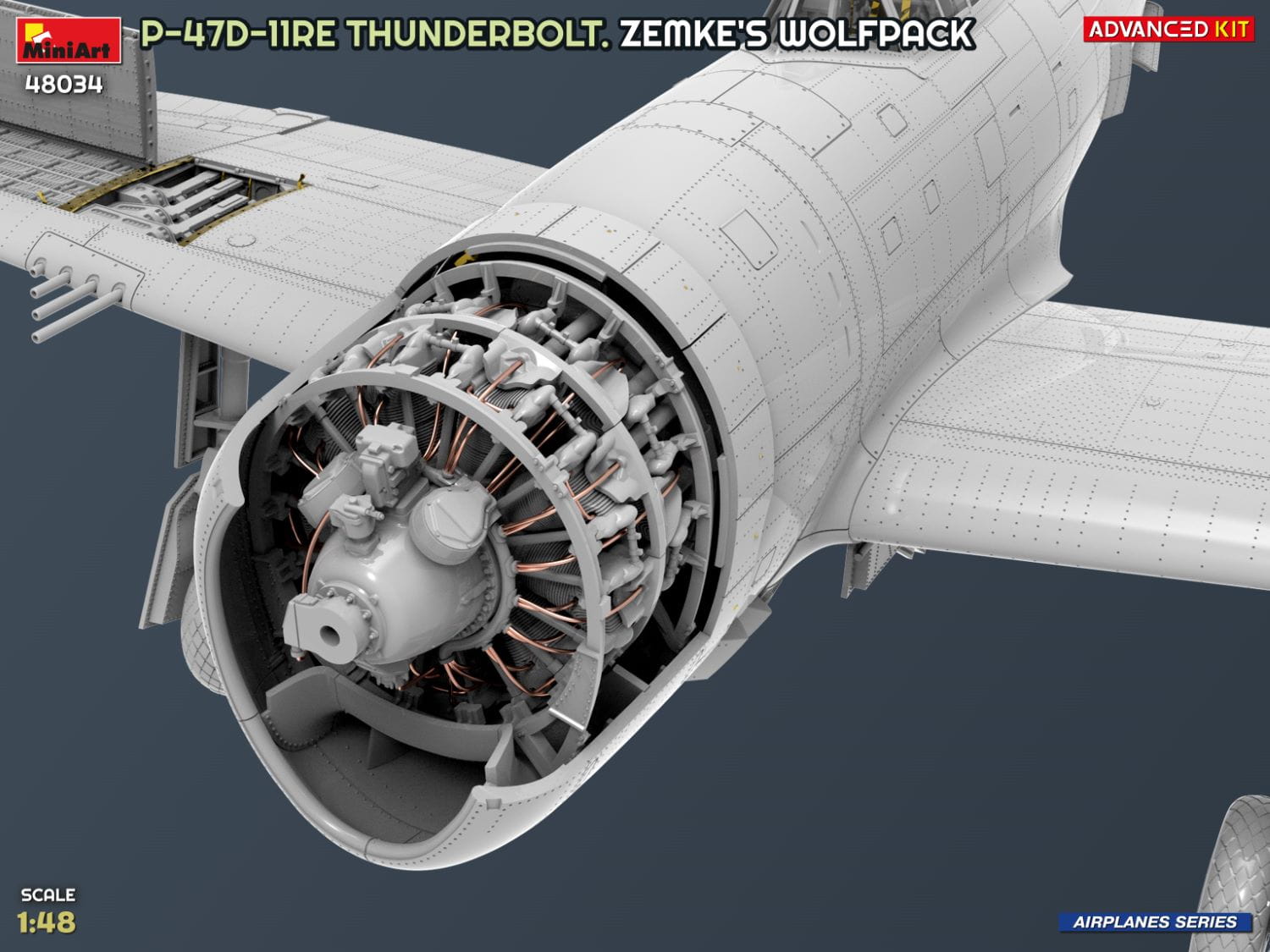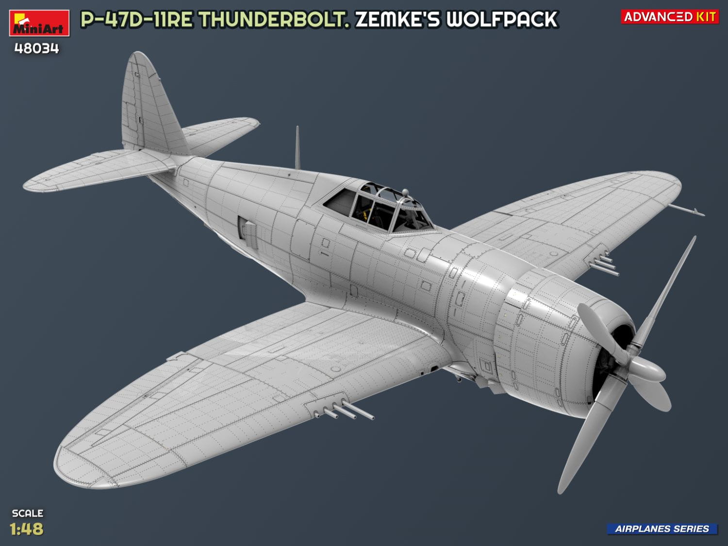 Model plastikowy do sklejania w skali 1:48, amerykańskiego samolotu myśliwskiego Republic P-47D-11RE Thunderbolt Zemke's Wolfpack, z okresu II wojny światowej.