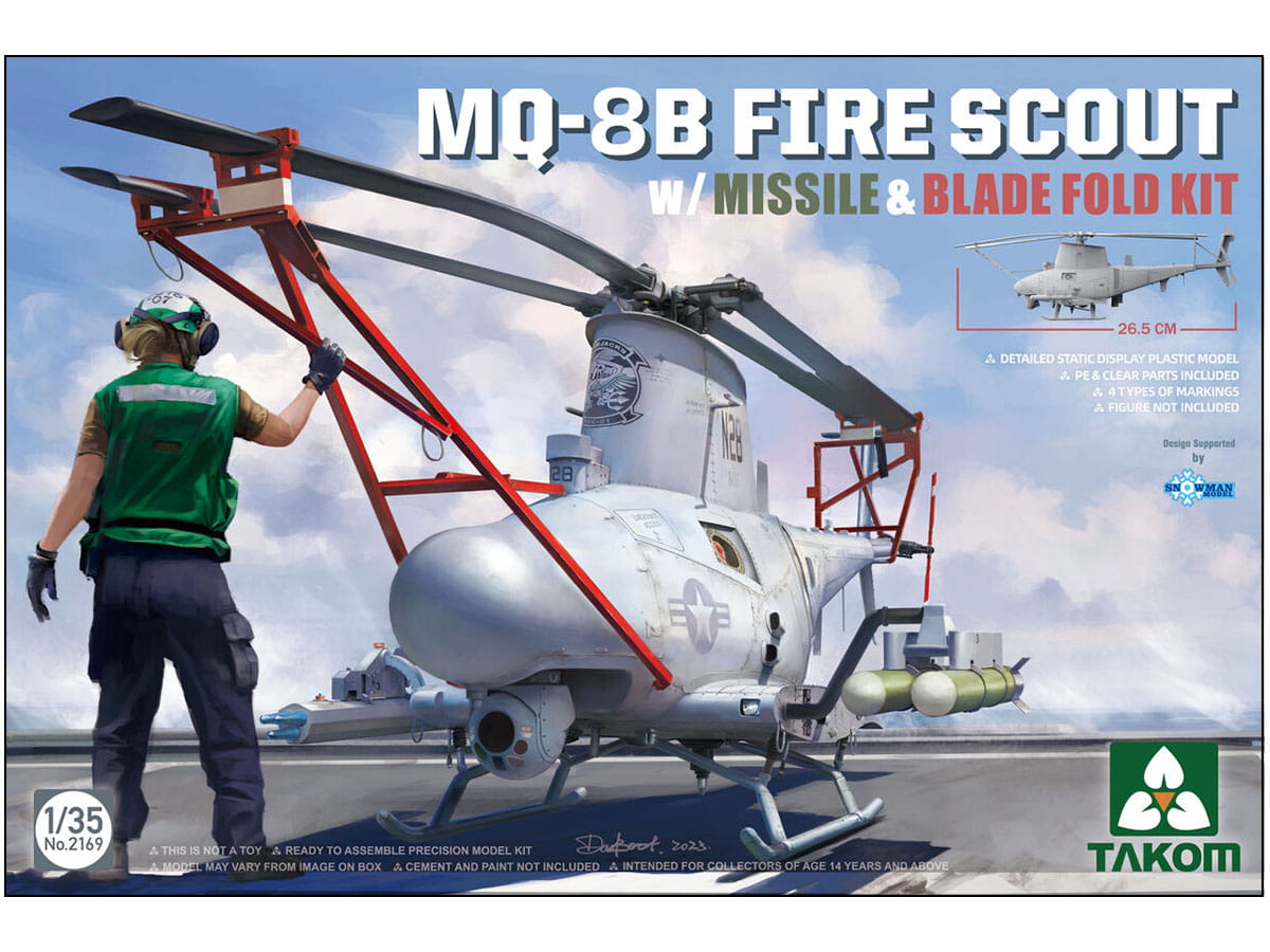 Model plastikowy do sklejania w skali 1:35, bezzałogowego autonomicznego śmigłowca Northrop Grumman MQ-8 Fire Scout w/missile & blade fold kit.