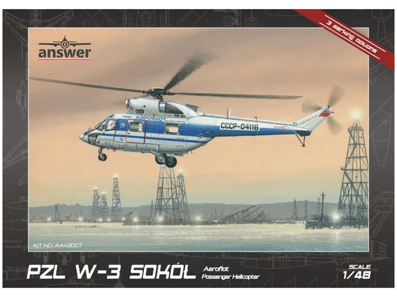 Model plastikowy do sklejania w skali 1:48, polskiego śmigłowca PZL W-3 Sokół służącego w rosyjskich liniach lotniczych Aeroflot.