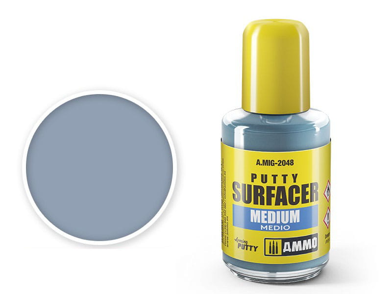 Płynna szpachlówka modelarska Putty Surfacer Medium na bazie rozpuszczalników organicznych, specjalnie zaprojektowana do wypełniania średniej wielkości szczelin i skaz na modelach. Ta szpachlówka nie kurczy się i może być szlifowana i malowana po jej wyschnięciu w ciągu 24 godzin.