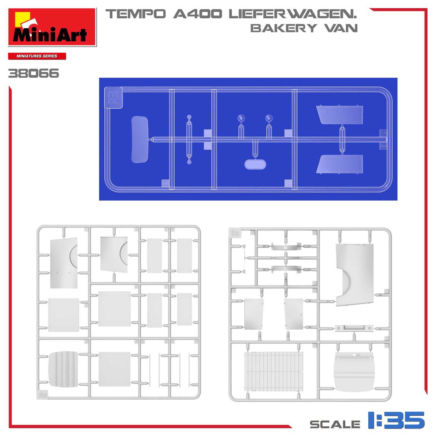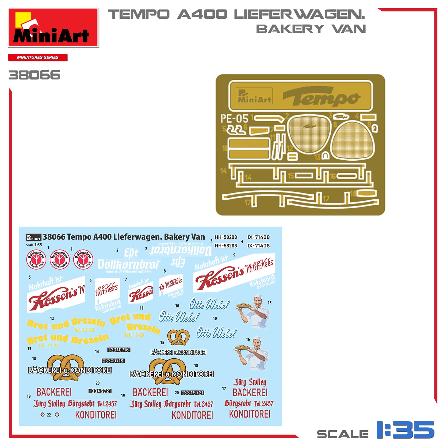 Model plastikowy do sklejania w skali 1:35, niemieckiego trójkołowego samochodu dostawczego Tempo A400 Lieferwagen Bakery Van.