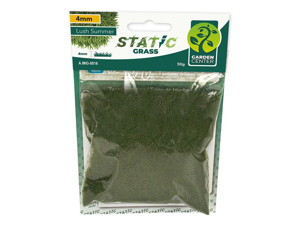 Statyczna sztuczna trawa "Lush summer" przedstawia trawę w środku lata. Zaprojektowana do ozdabiania podstaw małych scen i dioram z niezwykle realistycznymi efektami. Długość włókna 4 mm, idealna do reprezentowania wszystkich rodzajów trawy we wszystkich skalach.