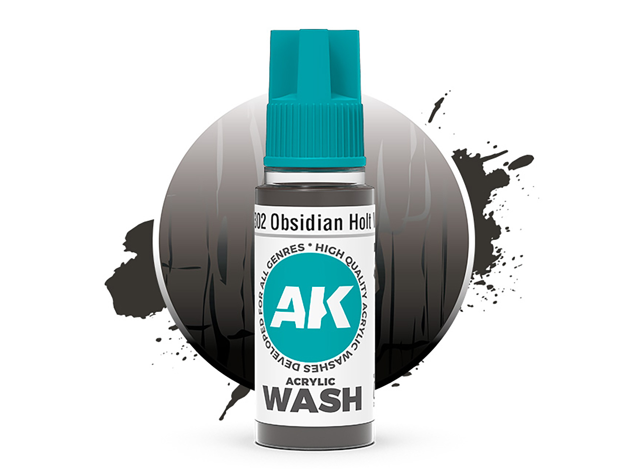 Wash modelarski akrylowy Obsidian Holt Acrylic Wash. Idealny do podkreślania detali zbroi, broni i maszyn. Idealny do ciemnych armii (Chaos, Nekrons, Black Marines itp.). Na jasnych kolorach (czerwonym, niebieskim, zielonym) dodaje wyrazistości, lekko przyciemniając kolor bez zmiany jego odcienia.