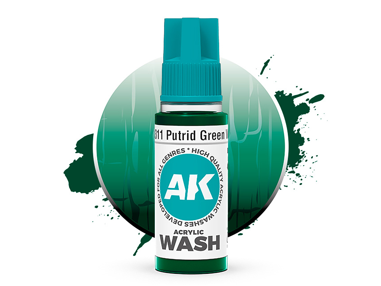 Wash modelarski akrylowy Putrid Green Acrylic Wash. Stworzony do dodawania cieni i głębi zielonym tonom lub roślinności na miniaturach. Szczególnie przydatny do miniatur fantasy lub sci-fi z motywami natury, dżungli, lasów lub zielonkawą, kosmiczną skórą. Idealny do krzewów, liści, trawy, pnączy lub podstawek do miniatur. Doskonale sprawdza się do skóry orków, goblinów, trolli i stworzeń fantasy o zielonych odcieniach. Dodaje cieniowania mięśniom i stawom, nadając objętości. Podkreśla fałdy i detale na zielonych ubraniach lub płaszczach, nadając objętości i wyrazistości.