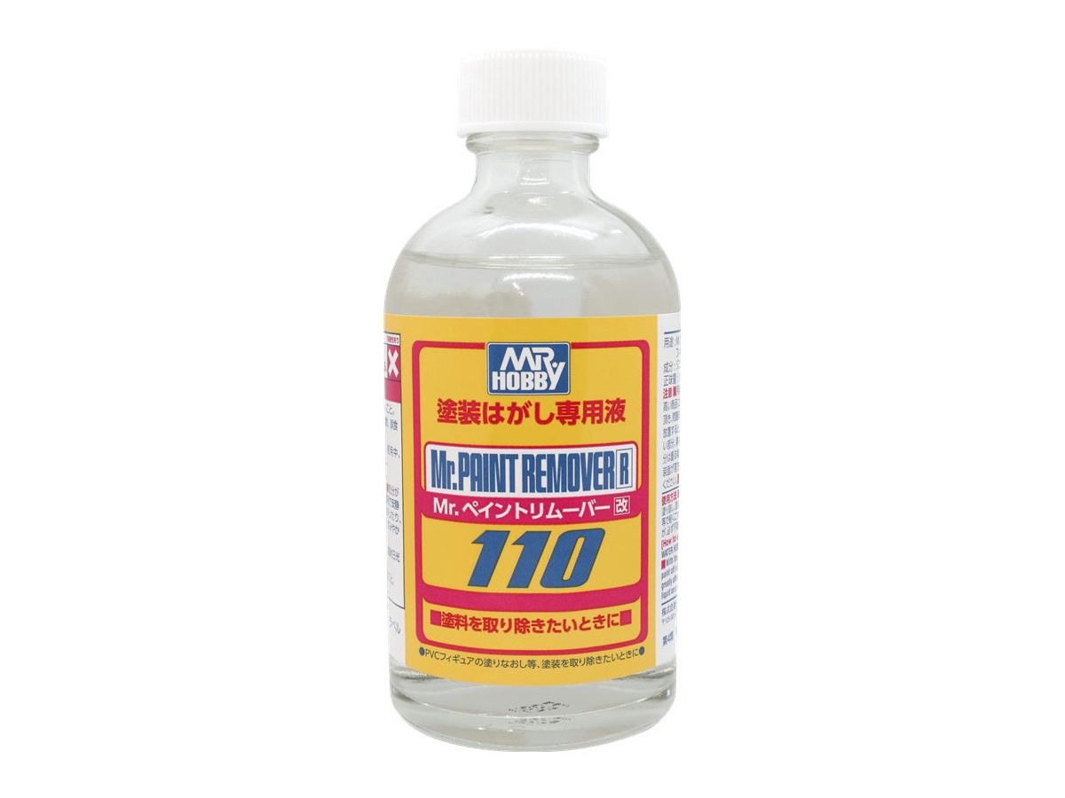Mr.Paint Remover R 110 został odnowiony dzięki ulepszonym składnikom i większej pojemności. W porównaniu z poprzednim produktem, ma on lepszą zdolność rozpuszczania powierzchni pomalowanych farbą Acrysion. (siła rozpuszczania farb Mr.Color i farb modelarskich na bazie wody nie uległa zmianie). Aby usunąć farbę z pomalowanej powierzchni (Mr.Color, farba modelarska na bazie wody lub Acrysion), przetrzyj ją szmatką lub wacikiem nasączonym płynem Mr.Paint Remover R 110, rozpuść i wytrzyj.