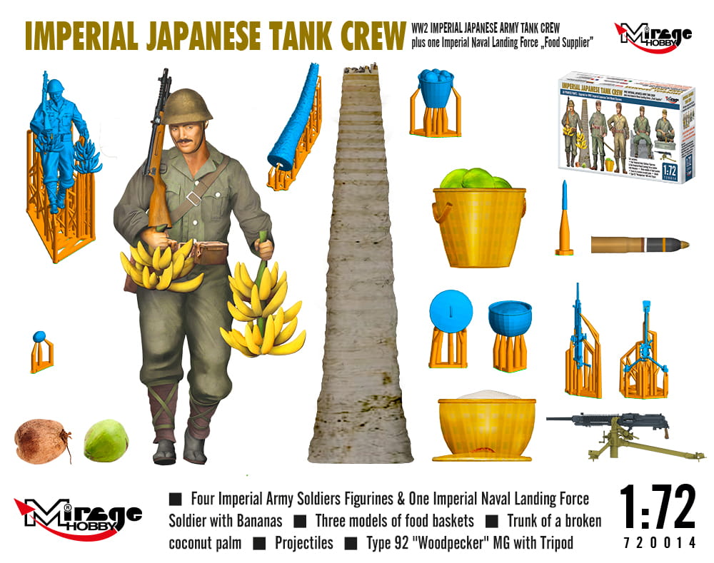 Modele plastikowych figurek do sklejania w skali 1:72, żołnierzy czołgistów Cesarskiej Armii Japońskiej z okresu II wojny światowej.